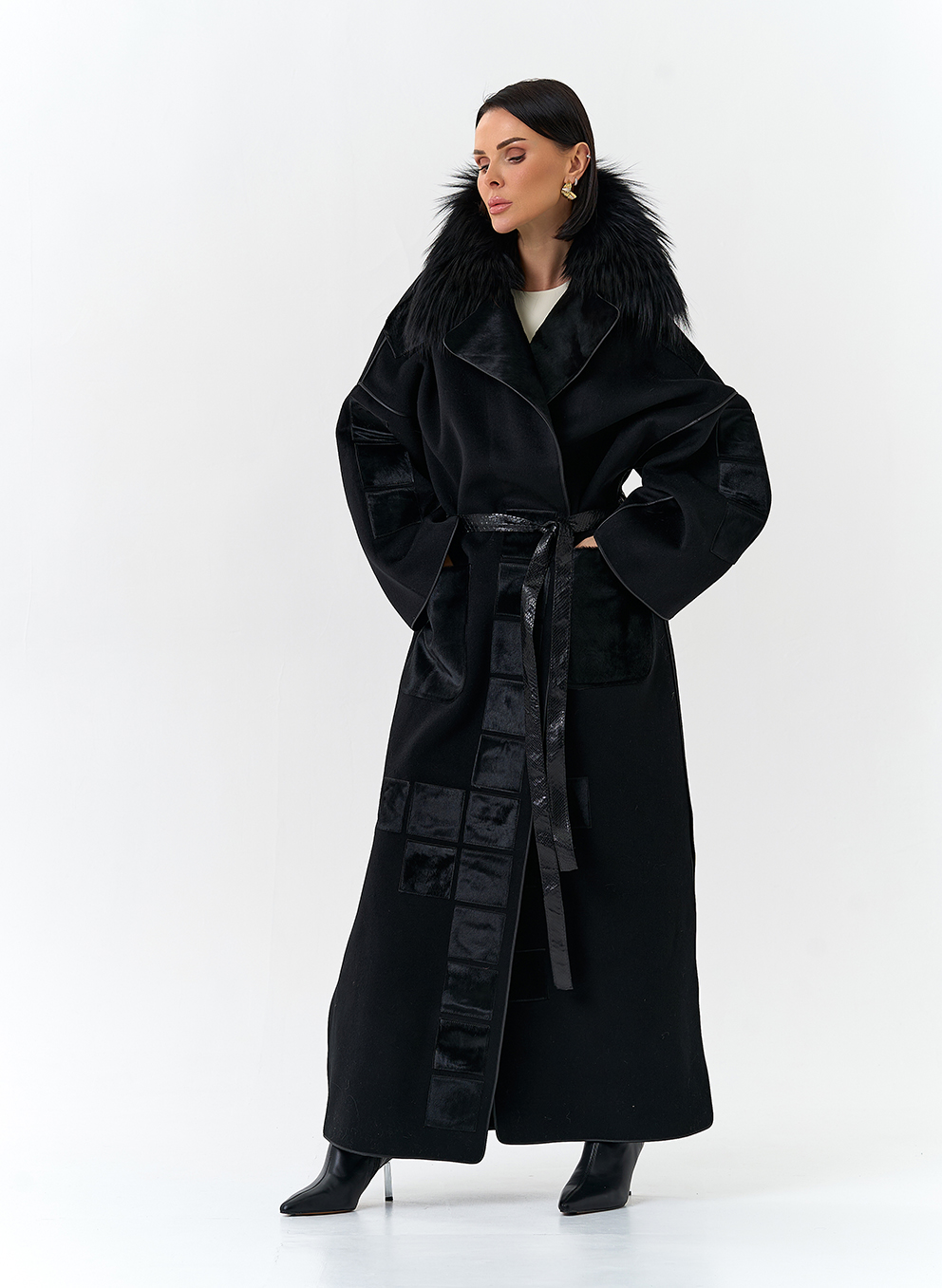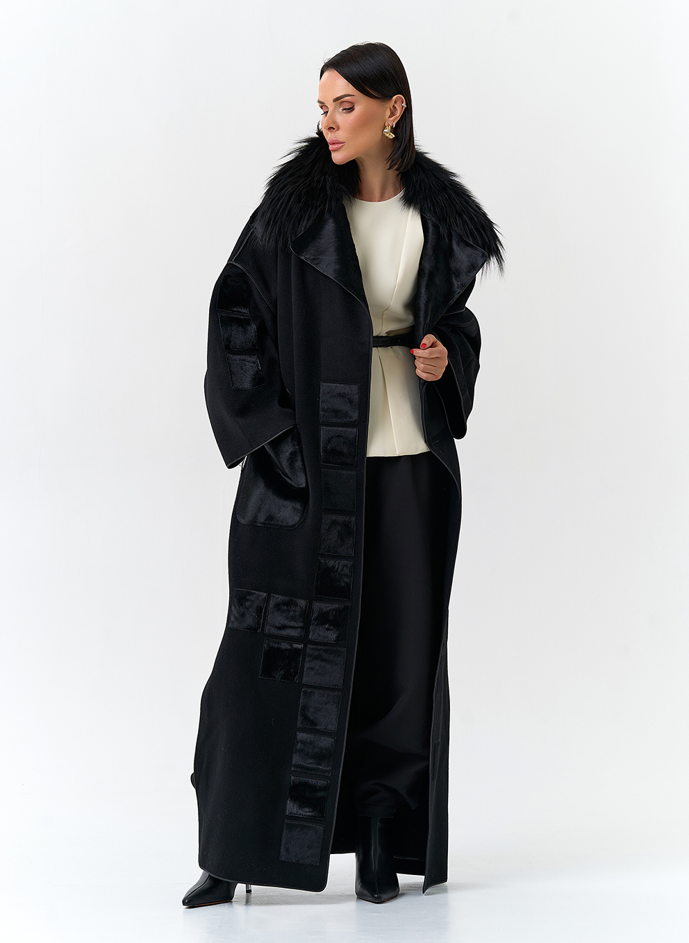 Отделка воротника - мех лисы, цвет черный; Cavallino