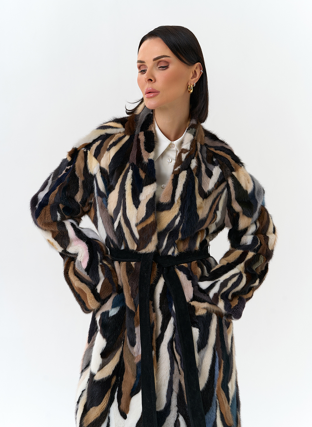 Раскладка меха и цвет пояса могут отличаться от представленных на фото